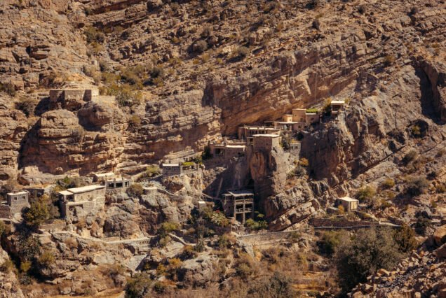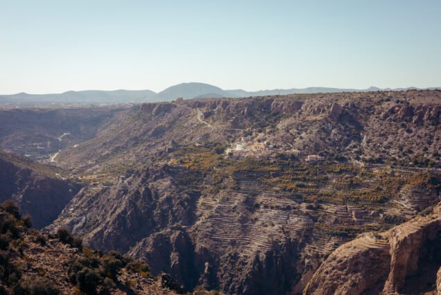 Finally, the tour ascends to Jabal al-Akhdar (requires a 4×4 vehicle). On the Saiq Plateau, you will hike or walk through the celebrated terraced farms of villages like Al Ayn and Ash Shirayjah, where fruits such as pomegranates, apricots, and roses are grown. The climax is the visit to Diana’s Point, a famous canyon viewpoint offering a spectacular panoramic vista.