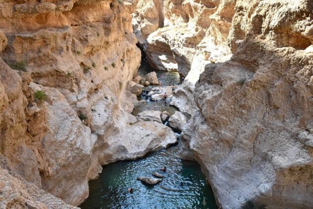 Wadi Mibam can be explored without ropes through the main wadi by focusing on the more accessible parts like the initial pools and swimming through them, though a rope is used for a manual descent in the full adventure. Visitors can skip the rope abseil and instead jump into the water from a ledge, but the hike still involves rough terrain, swimming, and potentially navigating tricky paths. To experience the wadi without the full rope abseil, focus on the more accessible parts of the wadi and enjoy swimming in the pools.